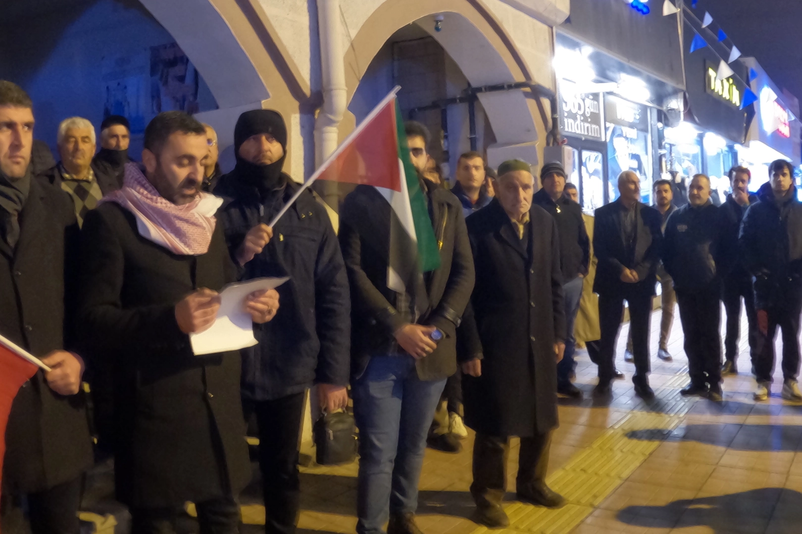 Erciş’te Vanyolu Camisi önünde bir araya gelen grup adına basın açıklamasını okuyan TÜGVA Erciş Başkanı Engin İşler, “Gazze’de terör devleti İsrail tarafından yapılan soykırım insanlık tarihine kara bir leke olarak geçmekte, bütün dünya bu soykırıma şahit olmaktadır. Son 68 günde İsrail tarafından 18 bin masum insan katledilmiştir. 7 bin 112’si çocuk, 4 bin 885’i kadın olmak üzere binlerce masum, ibadethanelerin, okulların, hastanelerin bombalanması sonucu şehit edilmiştir. Bu rakamlar bir matematik hesaplaması değil, katledilen masum insanlardır. Savaş hukukunun, evrensel insan haklarının alt üst edildiği bu saldırılar, şüphesiz bir soykırımdır. Dünya halkları bu soykırıma, bu katliama sessiz kalmamış, tepkiler göstererek ülkelerin harekete geçmesi çağrısında bulunmuştur. Her ne kadar çok geç kalsa da Birleşmiş Milletler Güvenlik Konseyi de bu çağrılara cevap vererek ateşkes ilan edilmesi için harekete geçmiştir. Ne yazık ki yapılan oylamada bütün üyeler oy birliği ile ateşkes yapılmasını talep ederken ABD’nin veto etmesi sebebiyle karar alınamamış, reddedilmiştir. ABD 13 Birleşmiş Milletler üyesi ülkeyi karşısına alarak İsrail’in katliamına ortak olduğunu tescillemiştir. Böylece Amerika tarihine de İsrail barbarlığına ortak olmak bir kara leke olarak yazılmıştır. Bu ret kararı şüphesiz Amerikan halkının değil, iktidarda bulunan Siyonist Biden hükümetinin bir kararıdır. Artık özgürlük, barış, insan hakları konusunda Amerika hükümetinin hiçbir iddiası ve samimiyeti söz konusu olamaz. Bu kararla dünyanın da 5’ten büyük olduğu açıkça görülmüştür. Artık Amerika, insanlığın gözünde özgürlük ve insan hakları ülkesi değil, barbarlık, zulüm, ırkçılık ve katliam ülkesi olarak tanımlanacaktır. Birleşmiş Milletler Güvenlik Konseyi yeniden reforme edilmeli, bütün dünya milletlerini karşısına alan Amerika bu katliama ortak olmanın bedelini ödemelidir. Daha iyi, daha adil bir dünya için bu ret kararını kınıyor, bütün dünya halklarını Amerika’ya karşı harekete geçmeye davet ediyoruz. Dünya Amerika’ya hükmeden Siyonist zalimlerden elbette daha büyüktür. Müslümanlar muzaffer olacak, onurlu ve izzetli Gazze halkının dik duruşu, katil İsrail’in sonunu getirecektir. İşgal edilen Filistin topraklarındaki bu zulmün hesabı insanlık vicdanıyla birlikte hukuk önünde elbette sorulacaktır. Gazze kasapları uluslararası mahkemelerde eylemlerinin hesabını verecektir. Son nefesimize kadar Gazzeli masum sivillerin yanında olacak, suçlular cezalandırılana kadar her platformda girişimlerde bulunmaya devam edeceğiz. Bir kez daha haykırıyoruz; dünya 5’ten büyüktür” dedi.