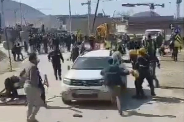 Cep telefonu ile görüntülenen o anlardan birinde, bazı işçilerin özellikle bir araca hem taşla hem de baretle vurmaları dikkat çekti.