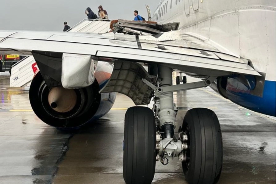 Tekerin dikmesinin kopması sonucu kanatta hasar oluşurken, ARFF ekipleri hızla müdahalede bulundu.