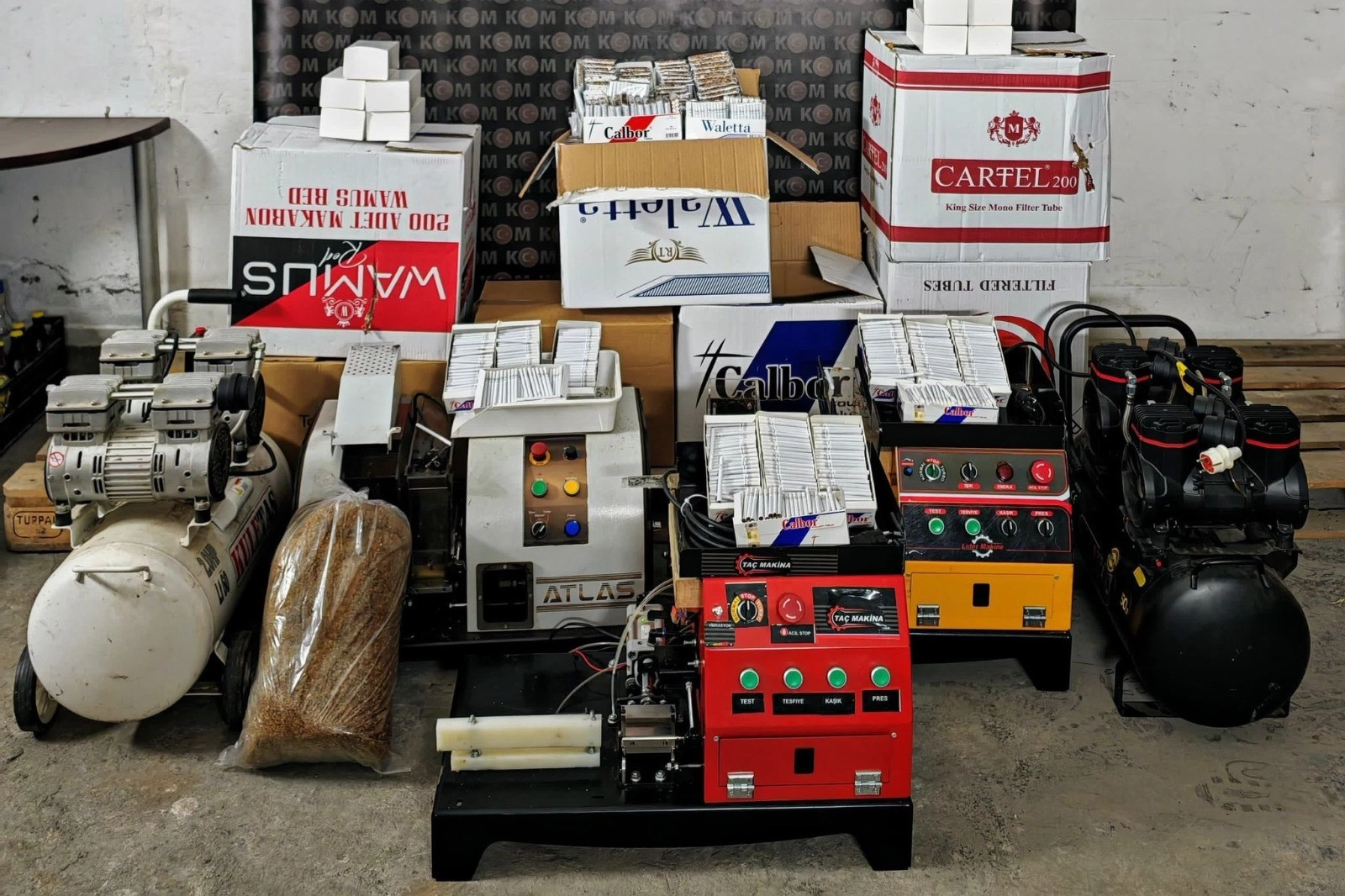 Şüpheli şahısların ikamet ve araçlarında yapılan aramada; 27 bin adet boş makaron, 11 bin 640 adet dolu makaron, 3 adet sigara sarma makinesi, 1 adet sigara sarma makinalarını çalıştıran kompresör, 14,7 kilogram kıyılmış tütün ele geçirildi. Adli makamlarca 2 şüpheli şahıs hakkında adli kontrol şartıyla serbest kararı verildi.