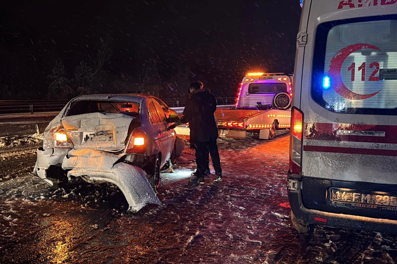 TEM Otoyolu Bolu geçişi Çaydurt mevkisinde saat 20.00 sularında meydana gelen kazada, akşam kar ve buzlanması sürücülere zorluk çıkardı.