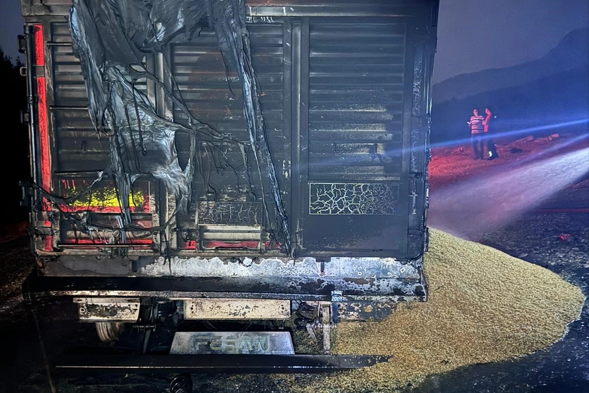 Alınan bilgiye göre, Çamalan bölgesi Alman Mezarlığı civarında B.G.'nin kontrolündeki buğday yüklü 42 ERG 15 kupa plakalı TIR'ın 42 ERK 59 plakalı dorse bölümünün alt kısmından dumanlar yükseldi.