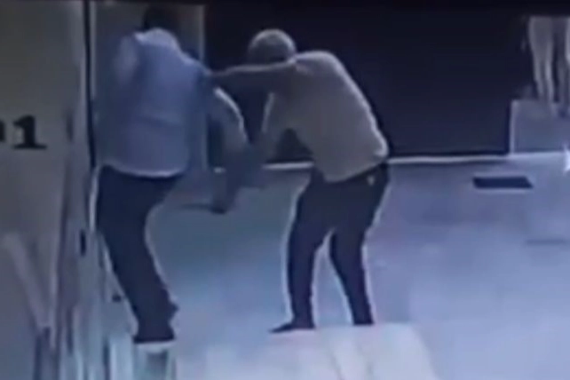 O anlar caminin güvenlik kameralarına da saniye saniye yansıdı. Görüntülerde, şüphelinin oturduğu yerden hızla kalkarak müezzine saldırdığı anlar yer aldı.