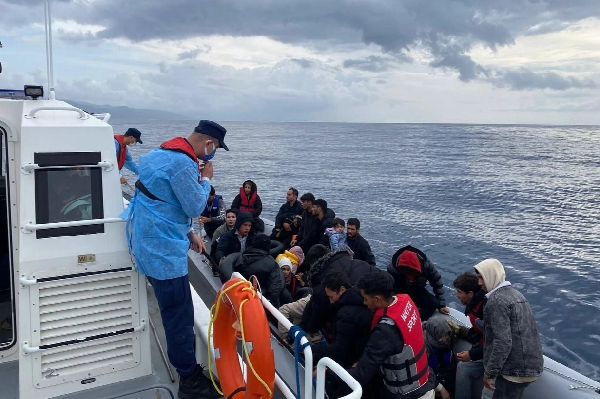 Kaçak göçmenlerin olduğu lastik botun motor arızası nedeniyle sürüklendiği ve yardım talebinde bulunulduğu bilgisi üzerine Sahil Güvenlik Botu ‘KB-20’ tarafından lastik bot içerisindeki 6’sı çocuk, 29 kaçak göçmen kurtarıldı.