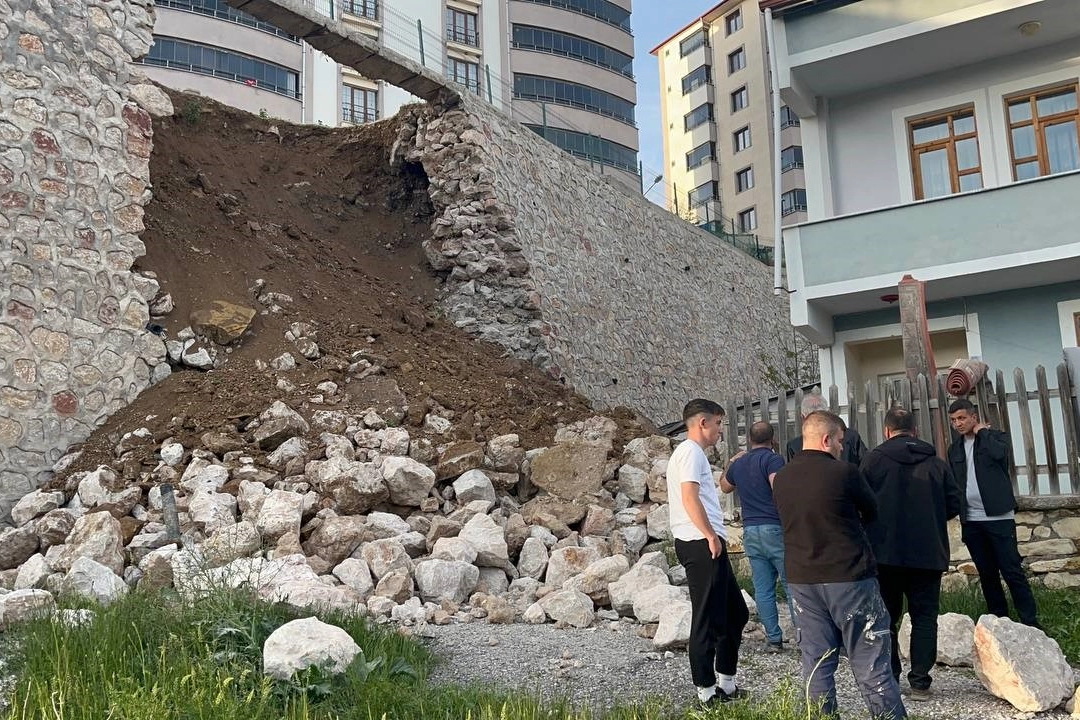 Bayburt'un Zahit Mahallesi, Çil Çil Konutları önündeki çocuk oyun parkının istinat duvarı göçtü. Alt toprak zemini kayan istinat duvarının bulunduğu alanda koca bir boşluk oluşurken, duvardan kopan büyük taş parçaları, istinat duvarının altında bulunan 2 katlı müstakil eve çarptı, evde maddi hasar meydana geldi. Çocukların, konut sakinlerinin şans eseri parkta bulunmaması facianın önüne geçti.
