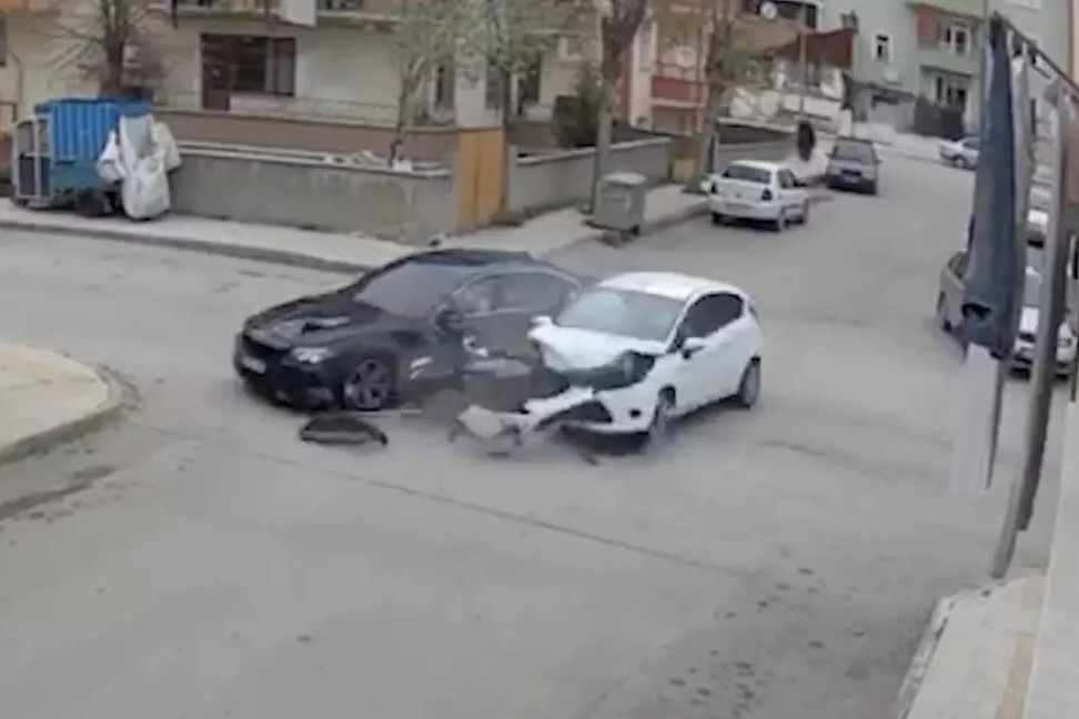 Kaza anı güvenlik kameralarına da yansıdı. Görüntülerde, araçlardan birinin çarpışmanın etkisiyle savrularak bahçeye girdiği, diğer otomobildeki çocuğun ise camdan dışarı fırladığı anlar görüldü.