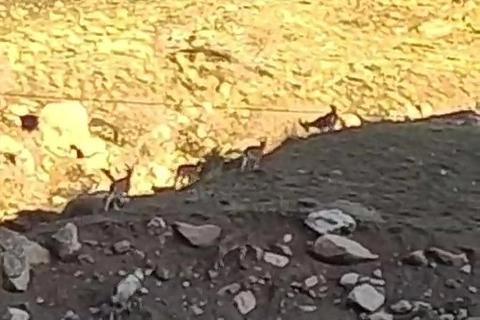 Yeşildere köyü yakınlarında sürü halinde Yüksekova-Van kara yoluna inen dağ keçileri, vatandaşlar tarafından cep telefonuyla görüntülendi.