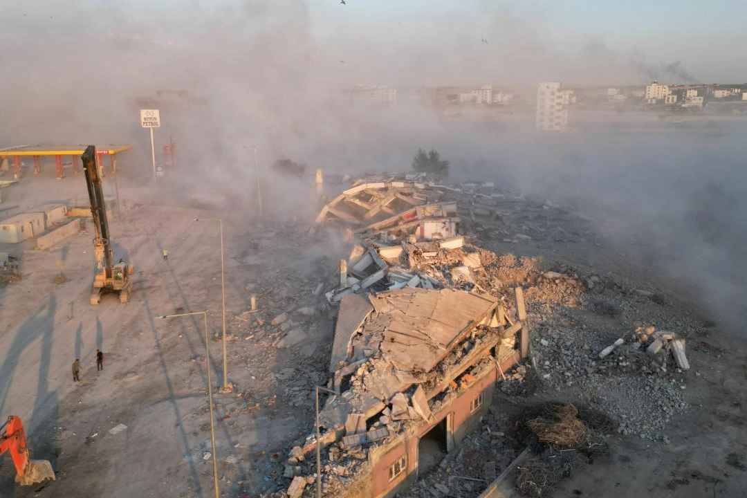 Bina, iş makineleriyle yürütülen çalışmalar sonucu kontrollü şekilde yıkıldı.