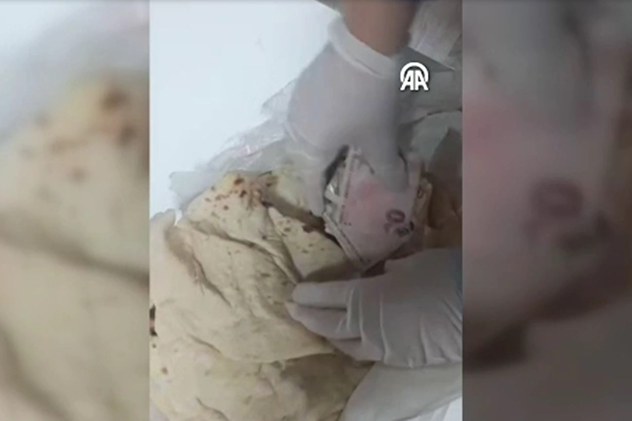 Kadının yanındaki poşeti gizlemeye çalışmasından şüphelenen zabıta memurları, lavaşın içine sakladığı bir miktar paraya el koydu.