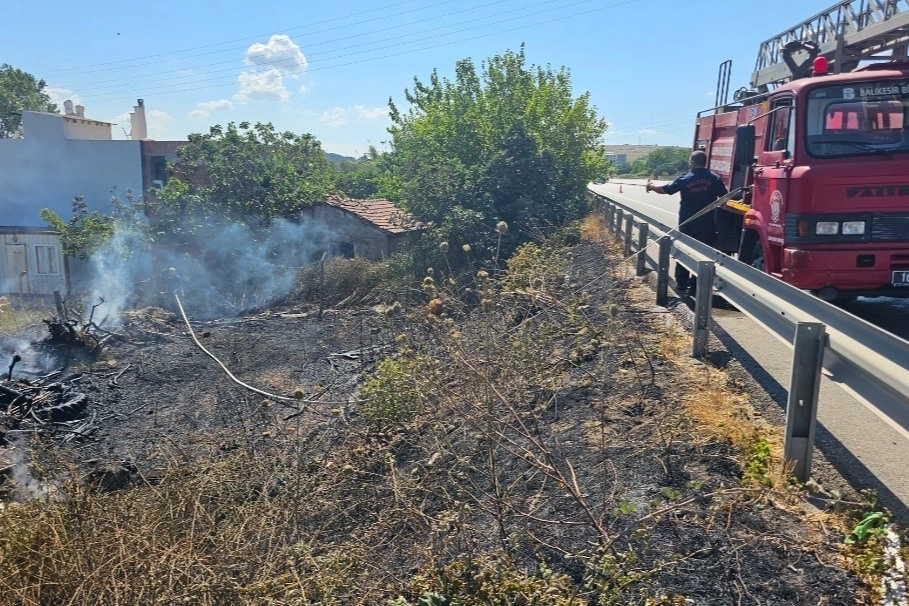Bandırma Eğitim ve Araştırma Hastanesi'ne yakın bir yerleşim yerinde meydana gelen olayda, İddialara göre, Bandırma-Bursa istikametine seyir halinde olan bir kamyonun egzozundan çıkan kıvılcımın neden olduğu belirtildi. Rüzgarın etkisiyle hızla yayılan yangın, kısa sürede kontrol altına alınması için Balıkesir Büyükşehir Belediyesi İtfaiye Daire Başkanlığı Bandırma Grup Amirliği ekiplerince müdahale edildi.