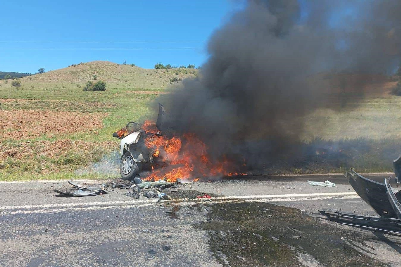 Kaza sonrası Tofaş marka otomobil alevlere teslim oldu. Kazada, otomobilde bulunan iki kişi yaralandı.