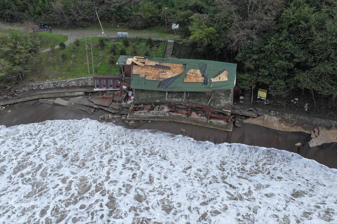 Deniz kenarında bulunan belediyeye ait 2 katlı turistik tesisin büyük bölümü, fırtına ve 5 metreye ulaşan dalgalar nedeniyle çöktü.