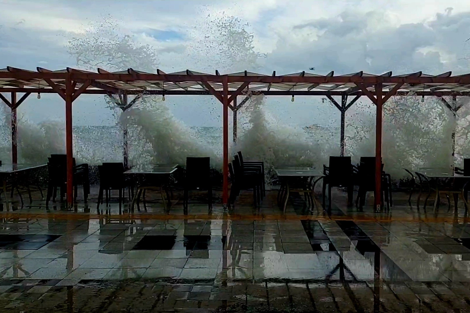 Zaman zaman boyu yaklaşık 5 metreye kadar çıkabilen dalgalar, sahil kıyısındaki demir korkulukları ve duvarları da aşarak sahil alanına aktı. Sahil alanının suyla kaplanırken, vatandaşlar zor anlar yaşadı.