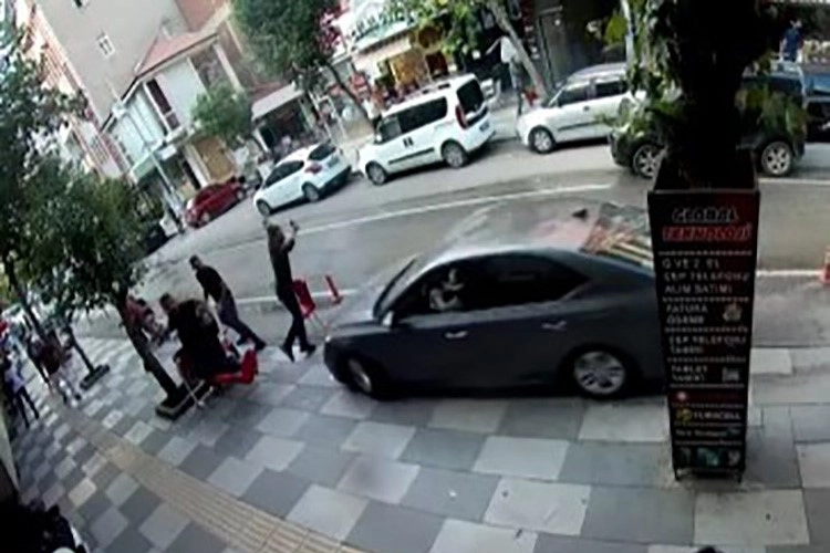 Kontrolü kaybeden sürücü, kaldırımda oturan grubun arasına daldı. Aracın üzerine geldiğini fark ederek zıplayan şahıs aracın çarpması ile taklalar attı.