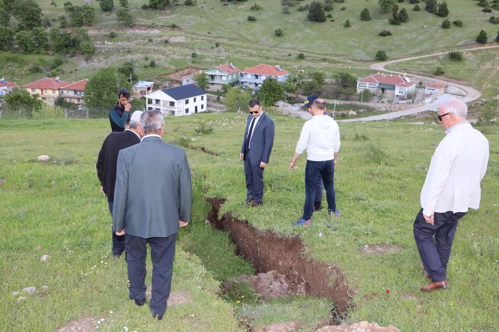 Emirdağ Kaymakamı Osman Bilici, yaklaşık 700 nüfusunu bulunduğu Çaykışla köyünde yaşanan heyelan bölgesinde incelemelerde bulundu.