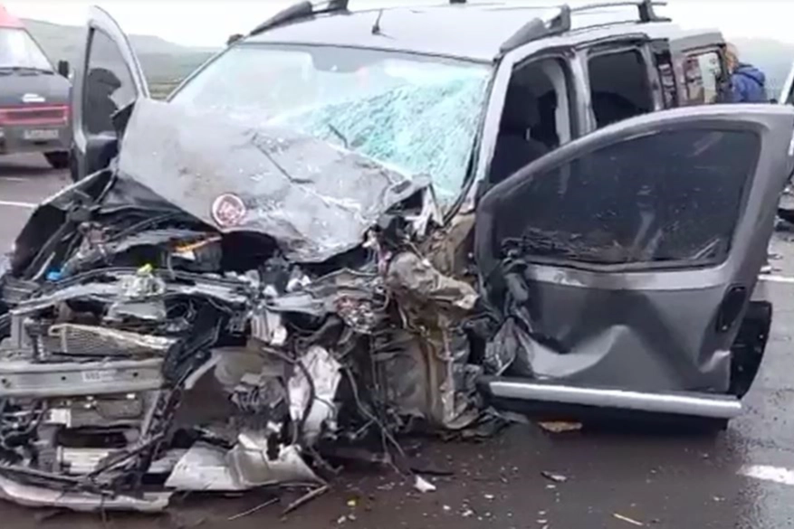 E.K. idaresindeki 25 HG 265 plakalı kamyonet ile F.G. yönetimindeki 75 AAE 454 plakalı otomobil, sağanak yağışın da etkisiyle sürücülerin direksiyon hâkimiyetini kaybetmesi sonucu kafa kafaya çarpıştı.