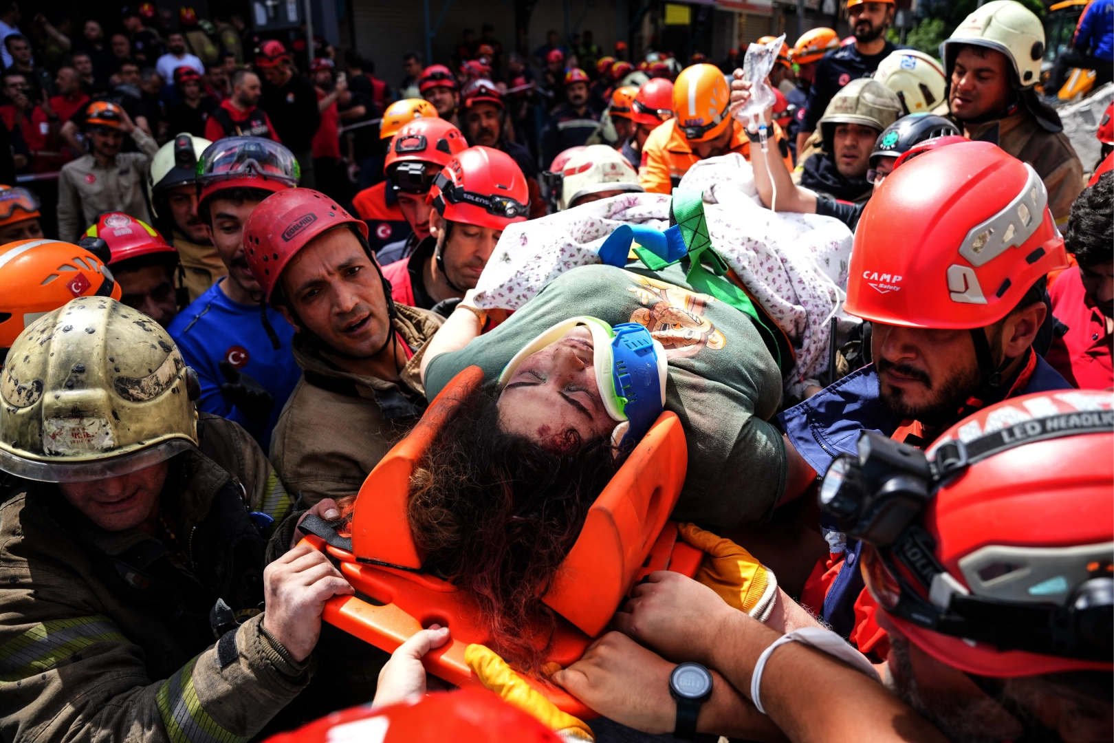 Çok sayıda AFAD, arama kurtarma ve sağlık ekibi çöken binanın altından 7 kişiyi yaralı olarak çıkarırken, göçük altında kalan 2 kişi için çalışmalar sürüyor. Enkaz altından çıkarılan yaralılar kameraya yansırken, kurtarılan yaralılar ilk müdahalenin ardından hastaneye sevk edildi.