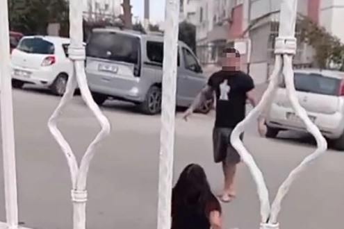 Tartıştığı eşine bir anda şiddet uygulayan kişi, sokakta bulunan çocukların gözleri önünde kadına saldırdı.