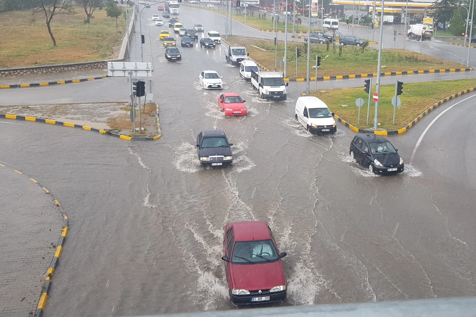 Metrekare yaklaşık 20 kilogram yağışın düştüğü kent merkezinde yollar göle döndü. Sileceklerin zor yetiştiği yağmur nedeniyle sürücüler zor anlar yaşadı.