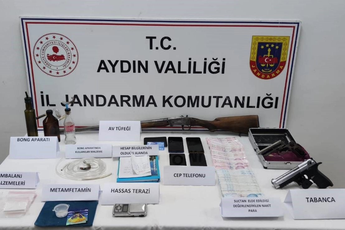 Aydın İl Jandarma Komutanlığı koordinesinde il genelinde uyuşturucu ile mücadele çalışmaları aralıksız devam ediyor. Edinilen bilgiye göre Kuşadası Cumhuriyet Başsavcılığı koordinesinde Aydın İl Jandarma Komutanlığınca "Uyuşturucu Madde Ticareti" suçunu örgütlü olarak işlediği tespit edilen şüphelilere yönelik operasyon gerçekleştirildi. Jandarma ekiplerince belirlenen adreslere yapılan baskında örgüt lideri ile birlikte 4 şüpheli yakalandı. Yapılan aramalarda ise uyuşturucu, silah ve uyuşturucudan temin edildiği belirlenen para ele geçirildi. Gözaltına alınan şüpheliler işlemlerinin ardından adli makamlara sevk edilirken, örgüt lideri E.P. ile Ö.K. ve Y.A tutuklanarak cezaevine gönderildi.