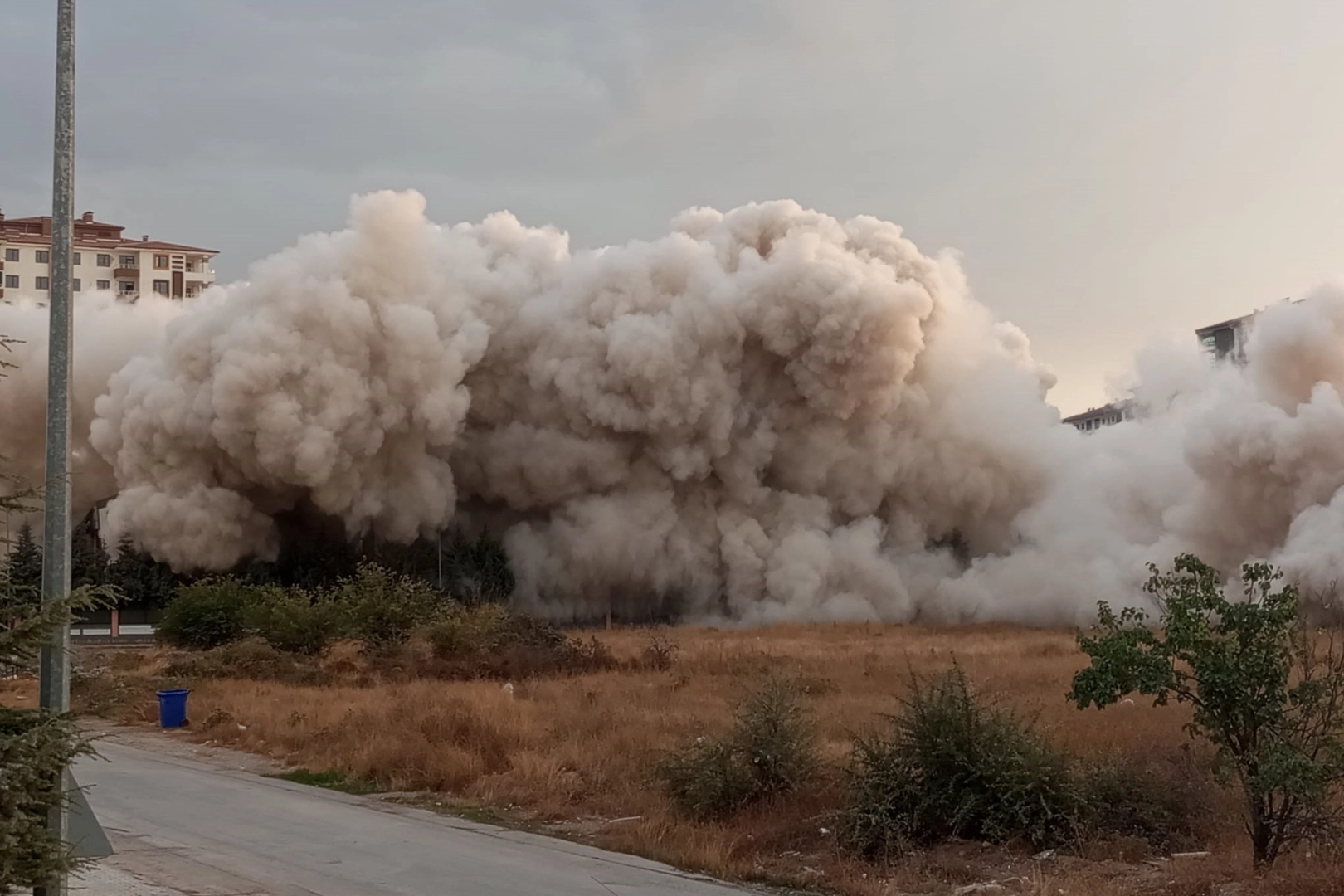 Yıkım işlemleri öncesi polis ekipleri bölgede geniş güvenlik önlemi alırken, bloklar 300 kilogram patlayıcı kullanılarak saniyeler içerisinde yıkıldı.