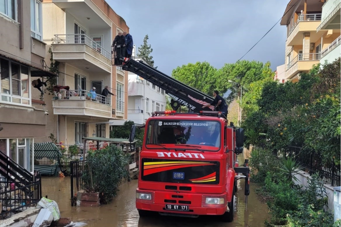 Sular altında kalan dairelerde oturan kişilerin ve hastaların yardımına, Balıkesir Büyükşehir Belediyesi İtfaiye Daire Başkanlığı Edremit İtfaiye Grup Amirliği ekipleri koştu.