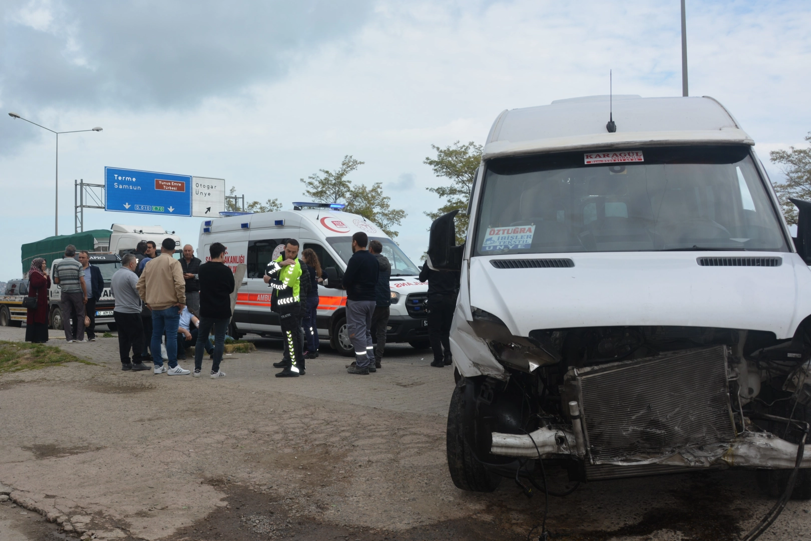 Kaza, Nuriye Mahallesi Devlet Sahil Yolu üzerinde meydana geldi. Edinilen bilgiye göre, Ünye’de bulunan özel bir tekstil firmasına ait çalışanları taşıyan Yüksel Öztürk idaresindeki 52 S 2134 plakalı servis minibüsü, sürücüsünün direksiyon hakimiyetini kaybetmesi sonucu önce orta refüjde bulunan bariyerlere, ardından yol kenarında kaldırıma çarparak durabildi. Kazada takla atmaktan son anda kurtulan minibüs içerisinde bulunan 10 kişi yaralandı. Yaralılardan 4'ü ilçedeki özel bir hastaneye, sürücüyle birlikte diğer yaralılar ise Ünye Devlet Hastanesine kaldırılırdı.