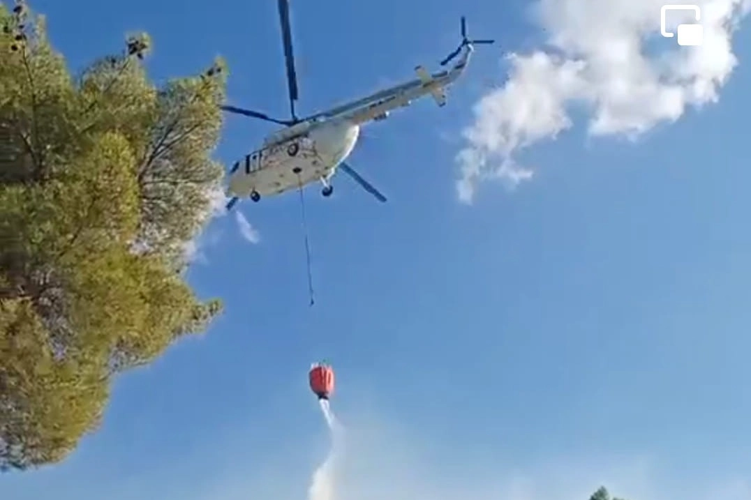 Ekiplerin sarp kayalıkların bulunduğu alanda yangına güçlükle müdahale ederken yangın söndürme helikopteri ile alevlere havadan müdahale ediliyor.