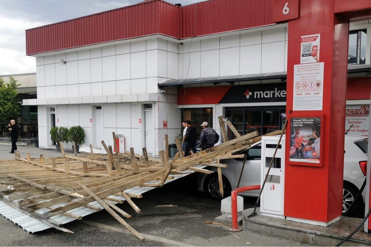 Edinilen bilgiye göre, 48 JN 211 plakalı Volkswagen marka otomobilin ismi henüz öğrenilemeyen sürücüsü yakıt almak için akaryakıt istasyonuna girdi. Dolum esnasında araçtan inenler markete girdi. Bu sırada rüzgarın şiddeti ile kopan istasyonun çatısı ise otomobilin üzerine düştü.