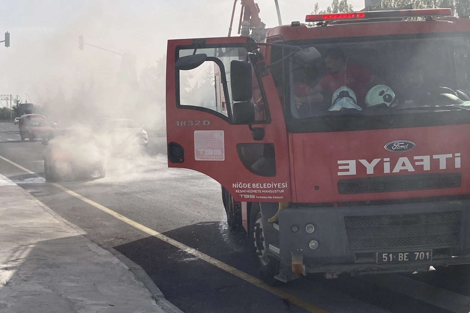 Olay, saat 18.00 sıralarında Niğde- Bor yolunda meydana geldi. D.B. yönetimindeki 51 ABA 342 plakalı otomobilin motor kısmında yangın çıktı.