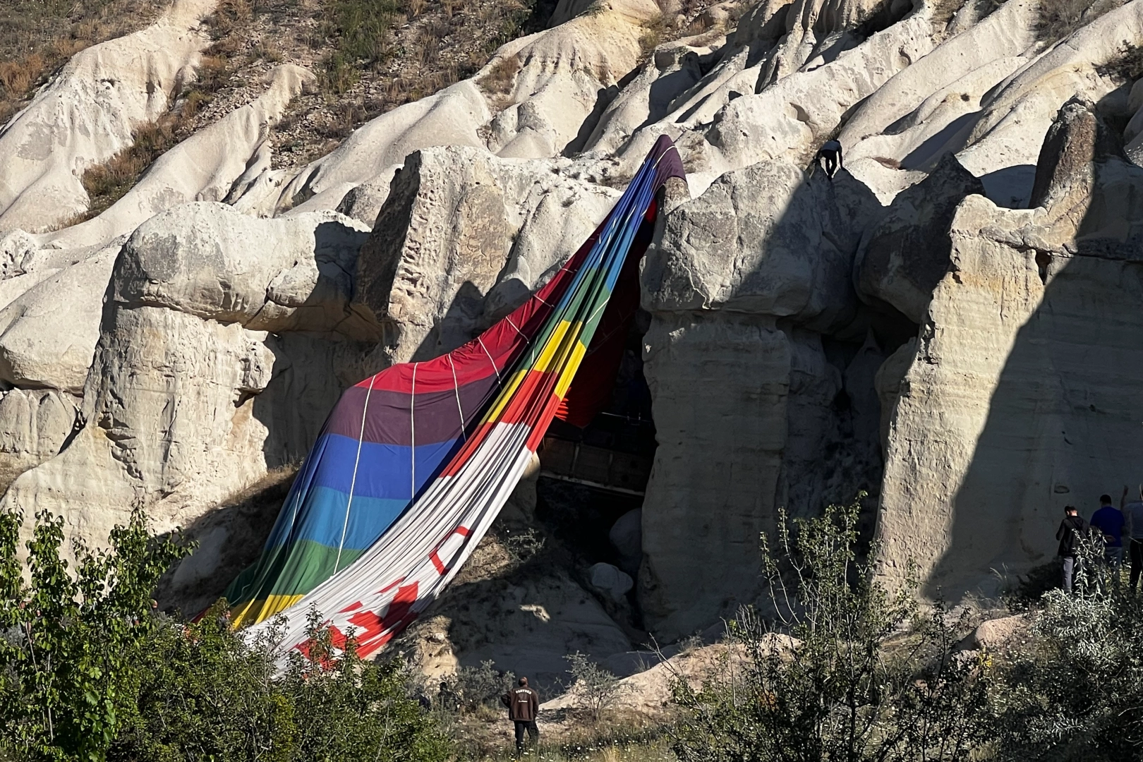Sabah saatlerinde Avanos ilçesine bağlı Çavuşin köyünden havalanan sıcak hava balonlarından biri, Göreme beldesinde bulunan Aşk Vadisi'ne geldiğinde ters rüzgara kapıldı. Balon pilotu Caner Uzun, tehlikeyi fark ederek acil iniş kararı aldı.