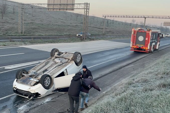 "Velimeşe'den Süleymanpaşa'ya gitmek için yola çıkmıştık. Yolda gizli buzlanma varmış, virajda direksiyon hakimiyetimi kaybettim. Araç ters döndü ancak emniyet kemerimiz takılı olduğu için hiçbirimiz yara almadık."