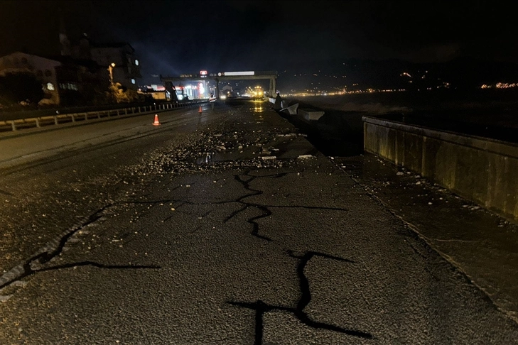 Yalı Mahallesi Güce Kavşağı mevkiinde kara yolunun bir kısmında denizde oluşan dalgalar sonucu çökme meydana geldi.