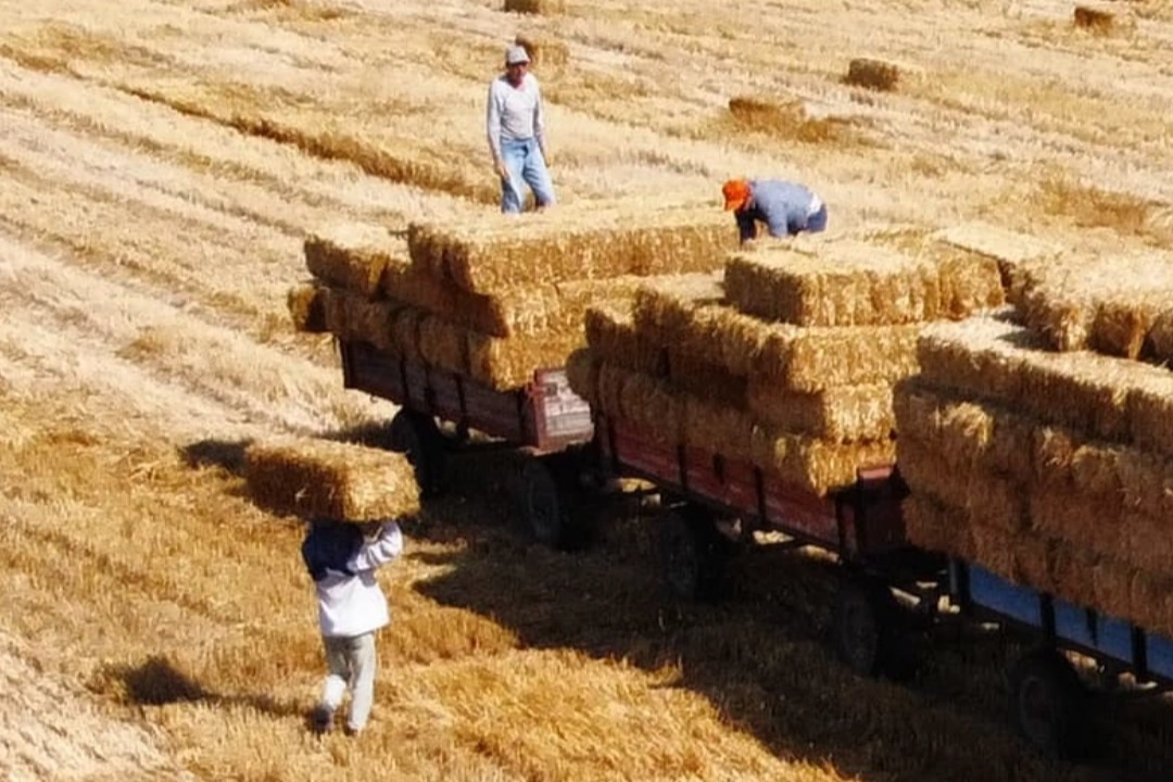 Balya işçileri, hem kaşındırmaması için kendilerini sap parçalarından hem de güneş çarpması ve sıcaktan korumaya çalışıyor. İşçiler, balya başına 15 lira ücret alıyor. Toz, sıcak, susuzluk demeden çalışan işçiler, mesailerini akşam saatlerine kadar sürdürüyor.