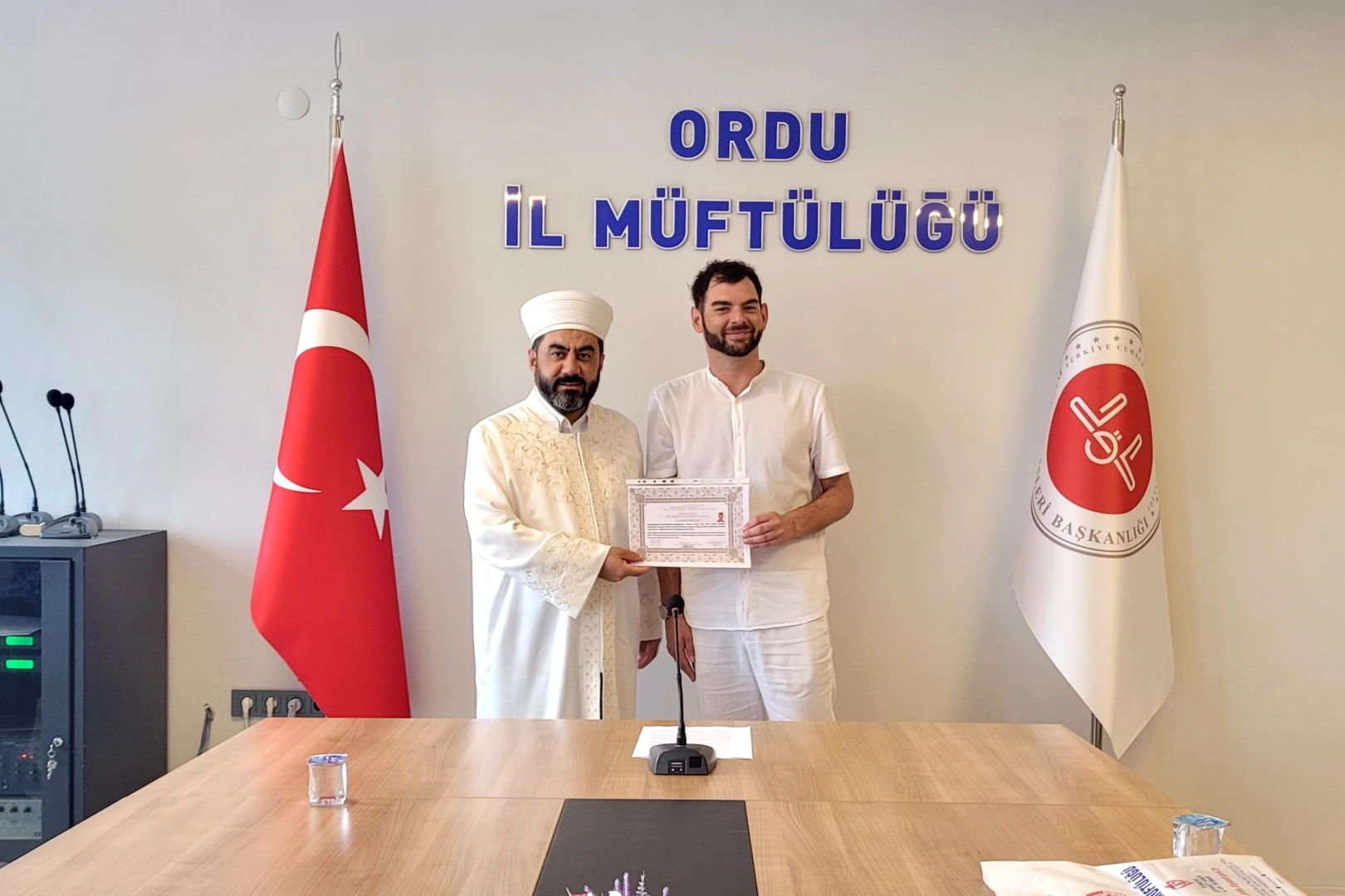 Ordu İl Müftülüğü ile iletişime geçilmesinin ardından Alman şahıs için müftülükte ihtida merasimi düzenlendi.