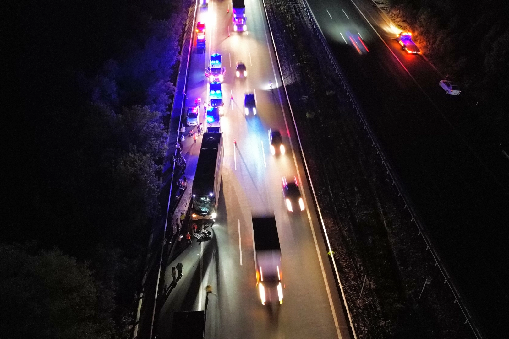Çarpışmanın etkisi ile otobüs şoförü M.Ç. araçta sıkışırken, çok sayıda yolcu yaralandı. İhbar üzerine bölgeye sağlık, polis, jandarma, itfaiye ve karayolları ekipleri sevk edildi. Otobüs şoförü M.Ç. yaklaşık 30 dakikalık çalışmanın ardından sıkıldığı yerden kurtarılırken, kazada 25 yolcu yaralandı.