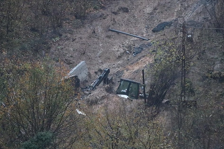 Öte yandan ilk heyelan sonrası çalışma yapıldığı sırada meydana gelen ikinci heyelanda toprak altında kalan iş makinesi de görüntülendi.