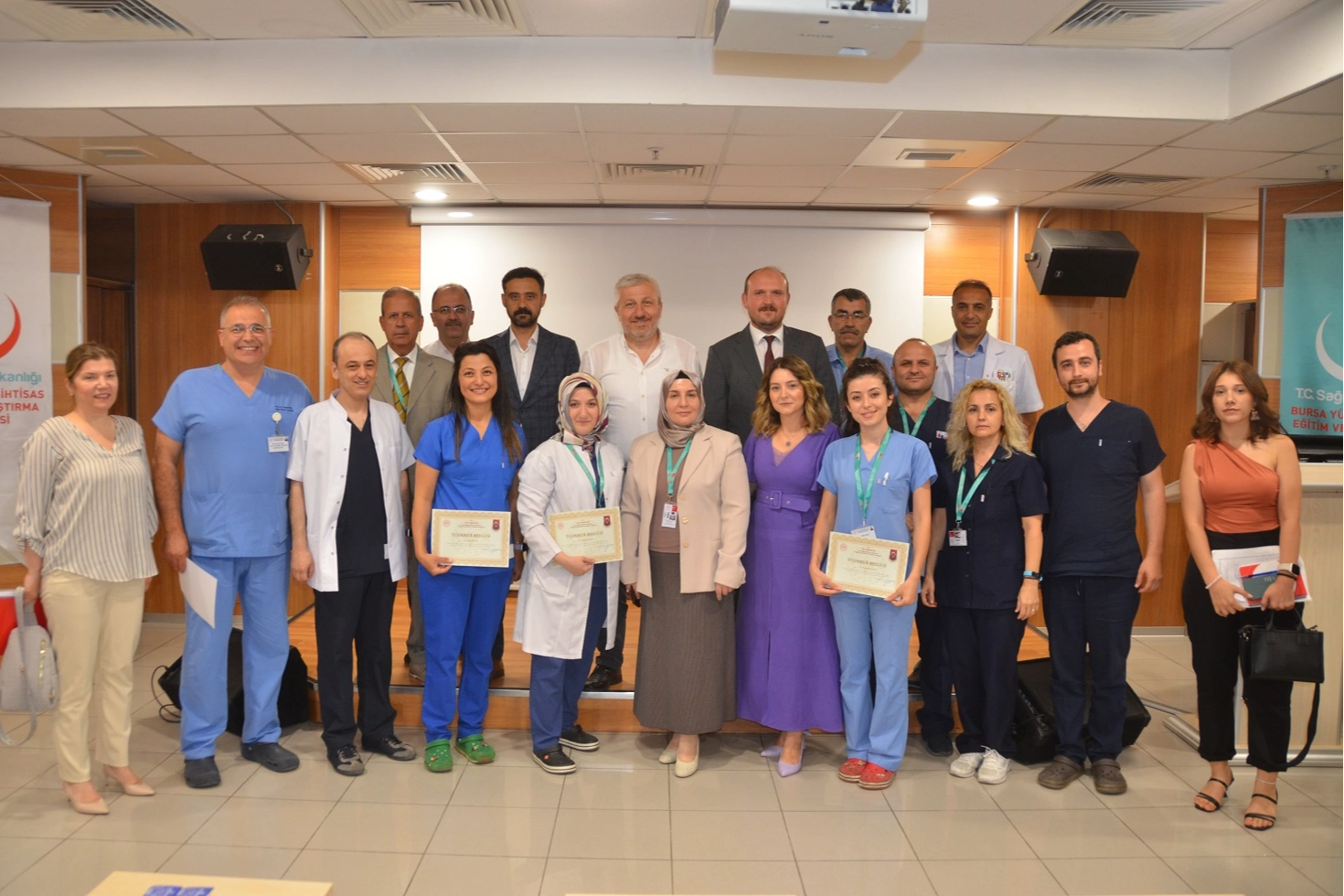 Bursa’da ilk kez Yüksek İhtisas Eğitim ve Araştırma Hastanesi’nde düzenlenen eğitime; Bursa Şehir Hastanesi’nden 1, Yüksek İhtisas Eğitim ve Araştırma Hastanesi’nden 4, Karacebey Devlet Hastanesi’nden 1, Gürsu Devlet Hastanesi’nden 1, Gemlik Devlet Hastanesi’nden 1 hemşirenin yanı sıra Gaziantep, Çanakkale, Sivas ve Balıkesir illerinden gelen hemşirelerle birlikte toplamda 12 kişi katıldı. Katılımcılar 10’u teorik 20’si uygulamalı olmak üzere toplam 30 gün gün süren eğitimin sonunda sertifikalarını; Bursa İl Sağlık Müdürü Dr. Fevzi Yavuzyılmaz, Yüksek İhtisas Eğitim ve Araştırma Hastanesi Başhekim Vekili Dr. Öğr. Üyesi Salih Metin, Sağlık Müdürlüğü Kamu Hastaneleri Hizmetleri Başkan Yardımcısı Uzm. Dr. Ahmet Timur'un katıldığı törenle teslim aldı.