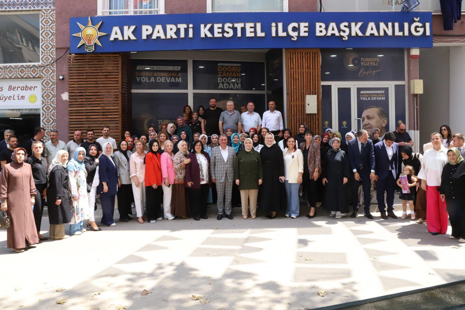 Milletvekili Durmaz, nazik misafirperverliklerinden dolayı AK Parti Kestel İlçe Başkanı Nesri Demir’e, Belediye Başkanı Ferhat Erol’a, Kadın Kolları Başkanı Tülay Çetin Saruhan’a ve tüm ilçe teşkilatına teşekkür ederek, dayanışma ve destek vurgusu yaptı.