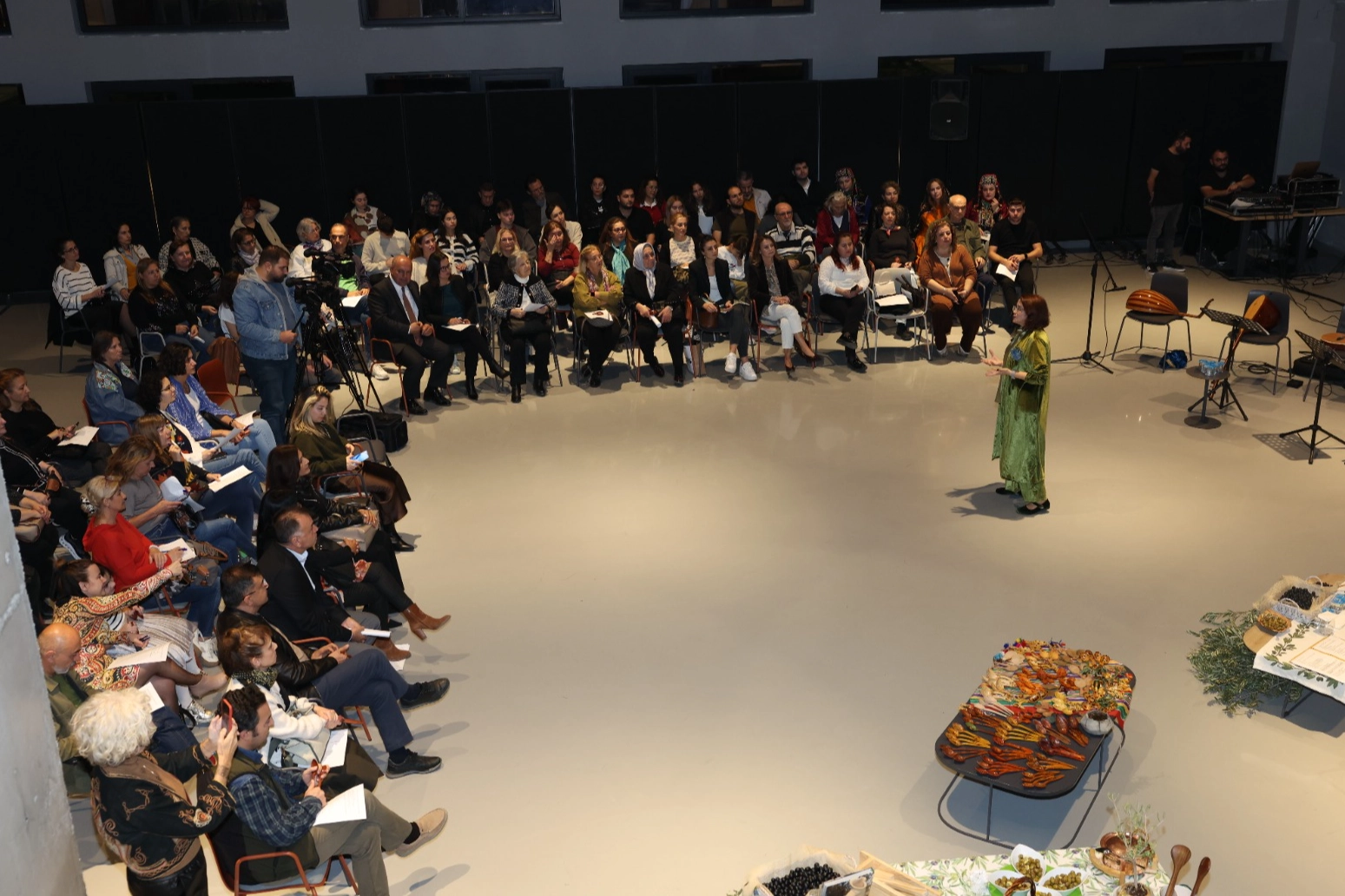 Söyleşi sırasında katılımcılar, Gemlik, Tirilye, Manisa ve Artvin başta olmak üzere Türkiye’nin farklı zeytin merkezlerinden gelen yerel lezzetleri tatma fırsatı buldu. Ayrıca Yunanistan zeytinleri ile İtalya’nın meşhur Focaccia ekmeği ve Fransa mutfağından Tapenad gibi dünya mutfağı seçkileri de menüde yer aldı. Tüm lezzetler, Prof. Dr. Özlem Doğuş Varlı’nın hikayeyle bütünleşen şarkı eşleşmeleriyle sunuldu.