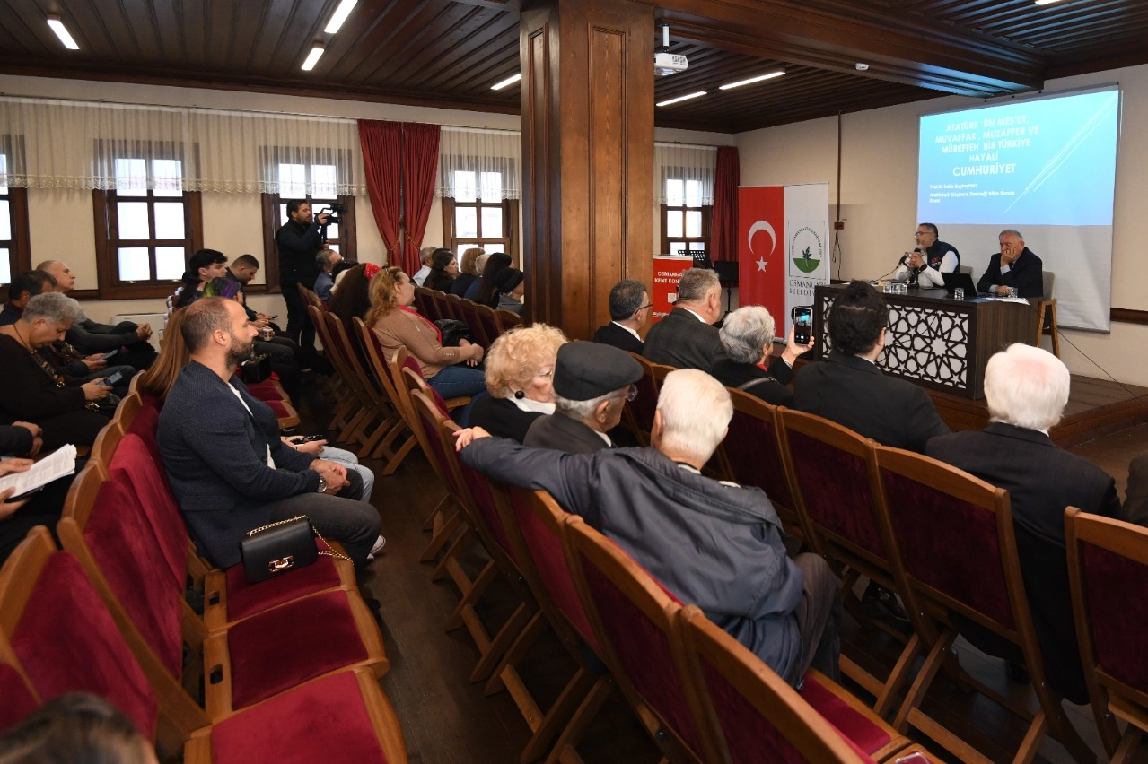 Osmangazi Kent Konseyi, 29 Ekim Cumhuriyet Bayramı etkinlikleri kapsamında Atatürkçü Düşünce Derneği iş birliğiyle “Nutuk’un Işığında Cumhuriyeti Anlamak” konulu panel düzenledi. Panelde, Atatürk’ün Cumhuriyet anlayışı ve çağdaş Türkiye vizyonu katılımcılarla paylaşıldı.
