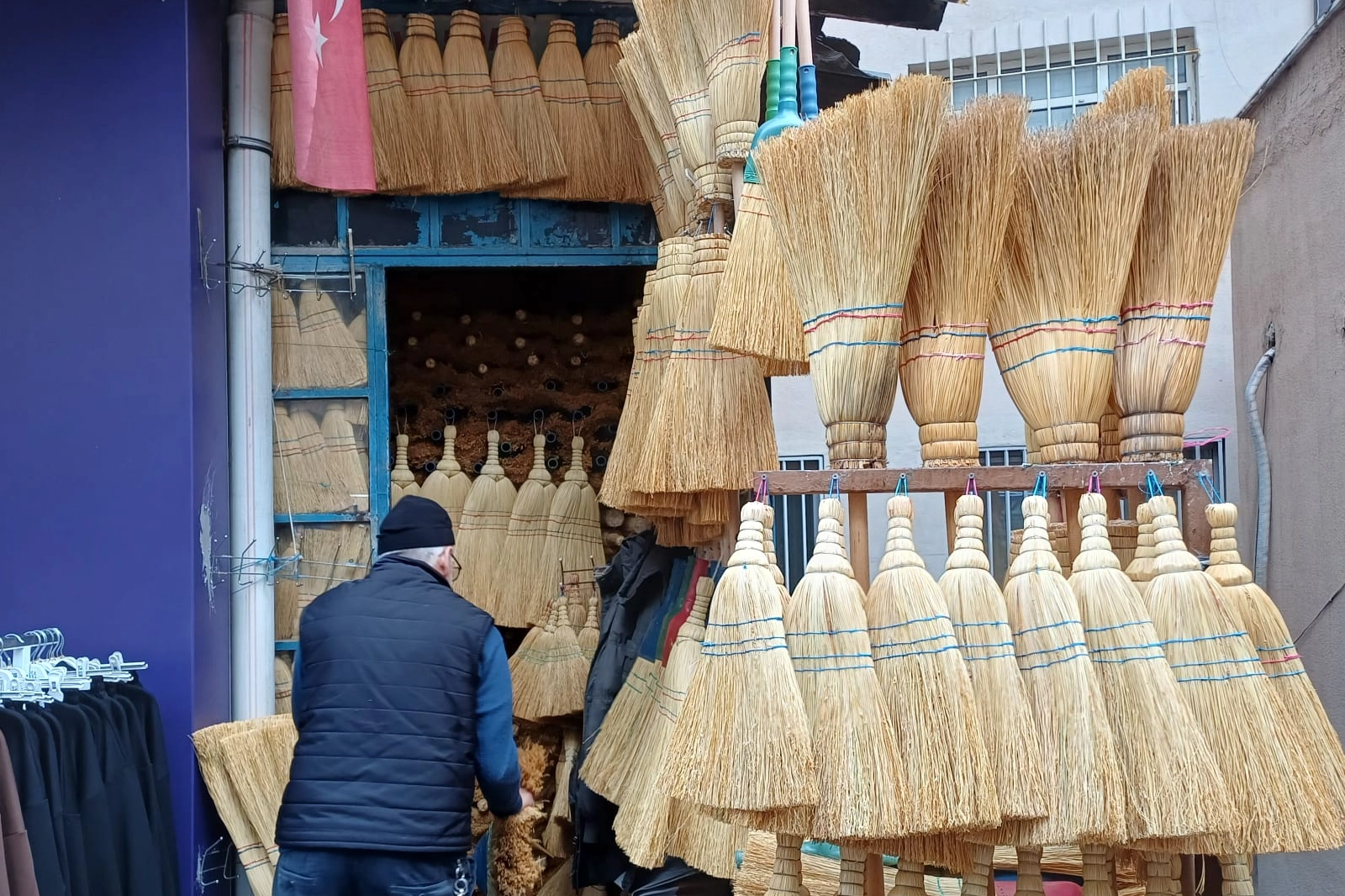 Bursa’nın en yoğun yaya trafiğine sahip noktalarından biri olan Cumhuriyet Caddesi'nde, geleneksel yöntemlerle üretilen süpürgelerin satıldığı tarihi dükkan, son yılların en durgun dönemini yaşıyor. Babasından devraldığı mesleği yarım asra yakındır sürdüren Yüksel Başak, işletmesinin geleceğinden endişeli.