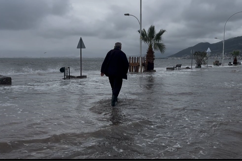 Marmara Denizi’nde etkili olan şiddetli fırtına, Bursa’nın Gemlik ilçesinde hayatı olumsuz etkiledi. Dev dalgalar nedeniyle sahil yolu ulaşıma kapanırken, taşan deniz suyu kıyıdaki işletmelerin kapılarına kadar dayandı. Bazı noktalar su altında kaldı.