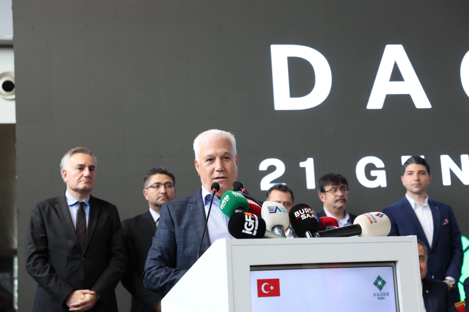 BAŞKAN BOZBEY'DEN DAĞDER GENEL KURULU'NA İYİ DİLEKLERYaklaşık 20 bin üyesi bulunan DAĞDER'in genel kuruluna Bursa Büyükşehir Belediye Başkanı Mustafa Bozbey de katılım gösterdi. Başkan Bozbey, dağ yöresi kökenli BESAŞ Yönetim Kurulu Başkanı Mustafa Orkun Gazioğlu, BURULAŞ Genel Müdürü Fahrettin Beşli, Tarım Peyzaj AŞ Genel Müdürü Sedat Akar, Jeotermal AŞ Genel Müdürü Erman Aydıngün, BUSKİ Özel Kalem Müdürü Mustafa Gazioğlu ve Dağ Yöresi Koordinatörü Ersin Yaşar ile birlikte sahneye çıkarak genel kurulun hayırlı olması temennisinde bulundu.
