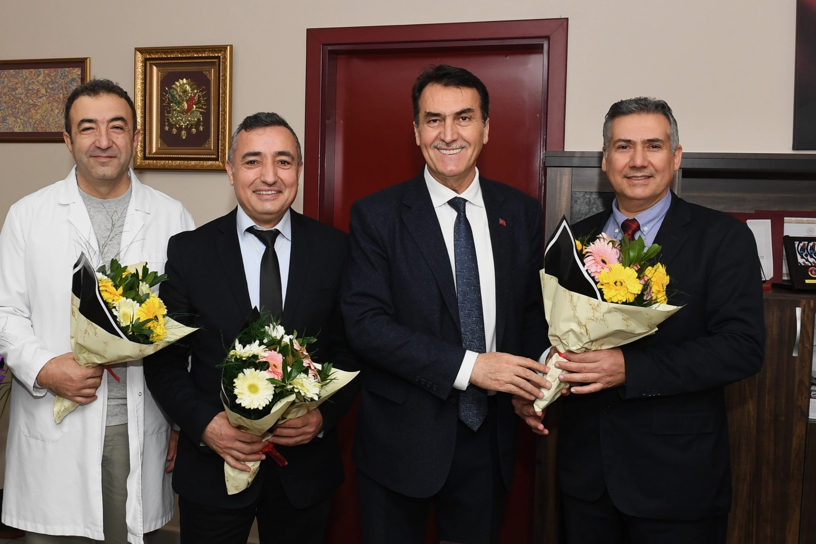 Çekirge Devlet Hastanesi sağlık çalışanları da kendilerini ziyaret edip, çiçek veren Başkan Dündar’a teşekkür etti.