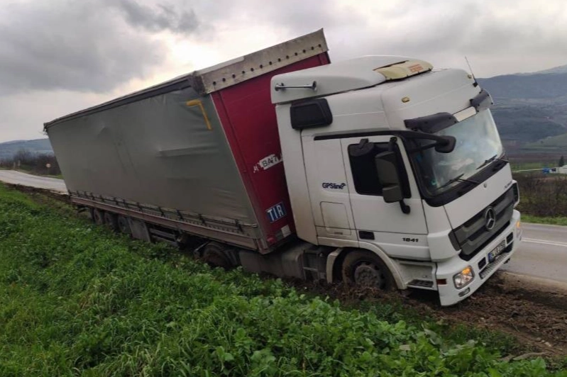 Edinilen bilgilere göre, Bursa’nın İznik ilçesi istikametine seyir halinde olan Enis Ç. yönetimindeki 34 LR 2756 plakalı TIR, sürücüsünün direksiyon hakimiyetini kaybetmesi sonucu kontrolden çıktı. Savrulan araç, yol kenarındaki şarampole düşerek durabildi.