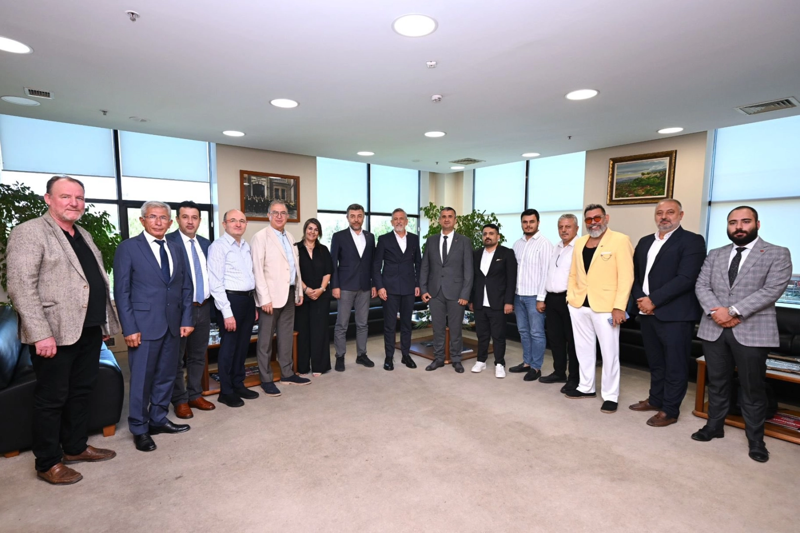 Başkan Burkay sosyal medya hesabı X platformu üzerinden paylaştığı gönderide, “Kent ekonomisi ve sektörel konulara ilişkin görüş alışverişinde bulunduk. Nazik ziyaretleri için teşekkür ediyorum” ifadelerini kullandı.