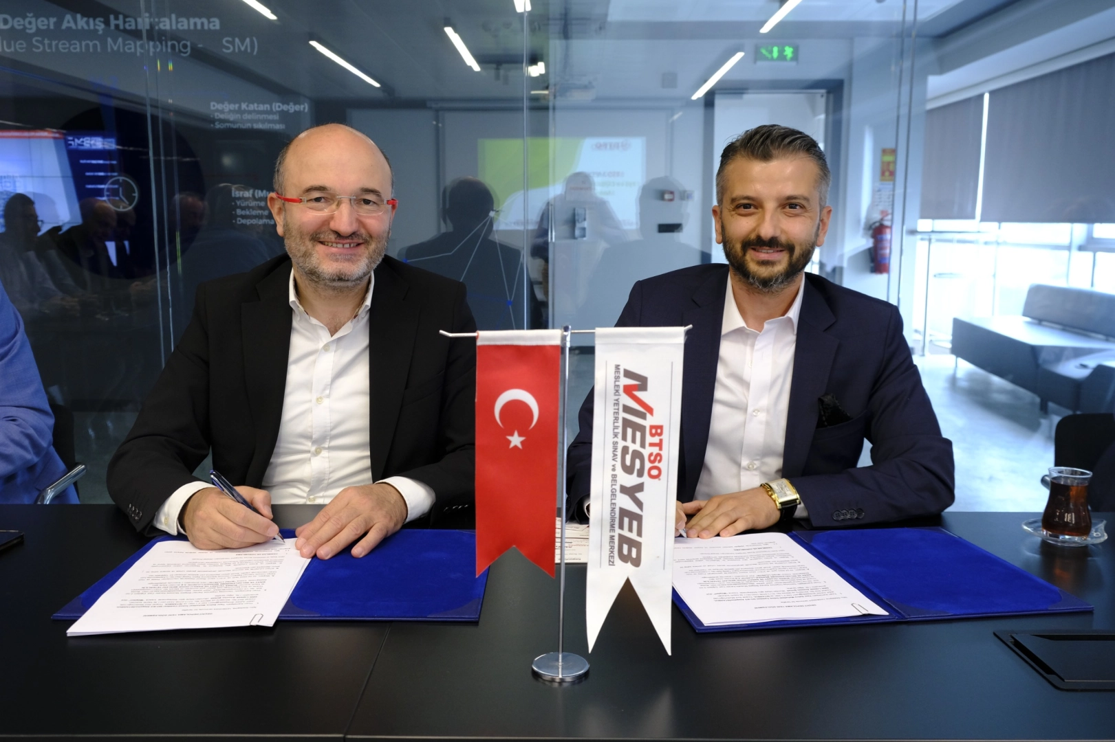 Bursa Ticaret ve Sanayi Odası (BTSO) çatısı altında faaliyet gösteren BTSO Lojistik A.Ş. Yenişehir Havalimanı’ndan ithalat ve ihracat işlemlerine hız kesmeden devam ediyor. Elektronik ticaretin öneminin giderek artmasıyla birlikte, BTSO Lojistik, ETGB (Elektronik Ticaret Gümrük Beyannamesi) kapsamındaki ihracat işlemlerini hızlandırmak amacıyla önemli adımlar atıyor. Bu doğrultuda, Kargomkolay.com ile yapılan görüşmeler sonucunda işbirliği protokolü imzalandı. Gerçekleştirilen toplantıya BTSO Yönetim Kurulu Üyesi Muhsin Koçaslan, Kargomkolay.com Yönetim Kurulu Başkanı Önder Türker, BTSO e-Ticaret Konseyi Başkanı İlker Özgüven, BTSO Lojistik Konseyi Başkanı Ersan Keleş ve BTSO MESYEB Genel Müdürü Ramazan Karakök katıldı.