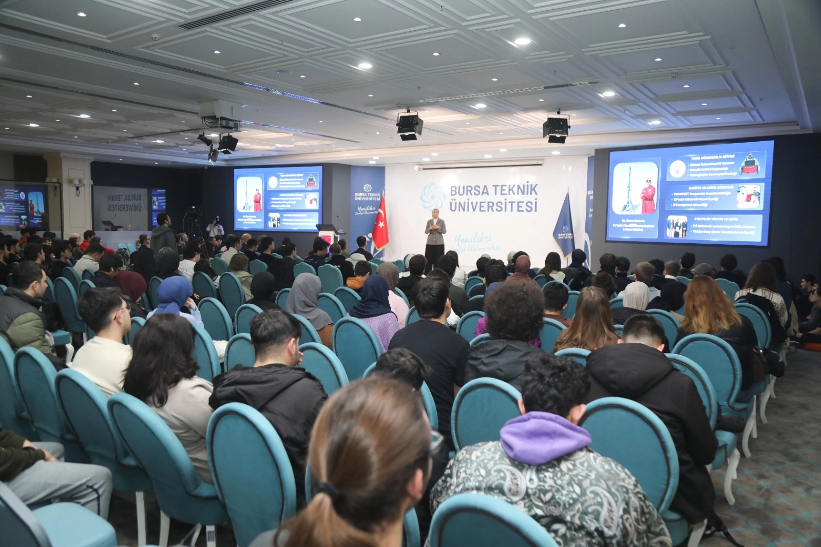 Bursa Teknik Üniversitesi, TEKNOFEST Teknoloji Yarışmaları’nda finale kalan öğrenci takımlarını bir araya getiren özel bir etkinliğe ev sahipliği yaptı. 2025 TEKNOFEST’te önemli dereceler elde eden öğrenciler, yarışma sürecindeki deneyimlerini 5 dakikalık sunumlarla katılımcılarla paylaştı. Etkinliğe BTÜ Rektörü Prof. Dr. Naci Çağlar’ın yanı sıra kamu ve sivil toplum temsilcileri katılım sağladı.