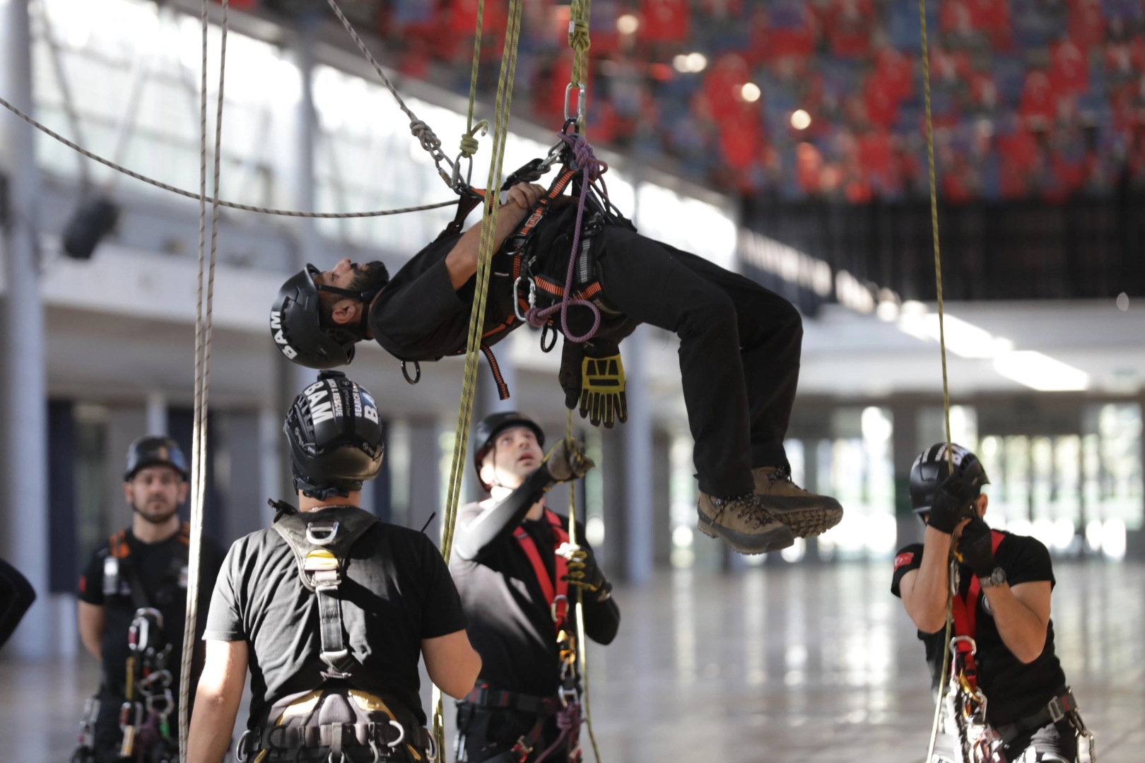Eğitimde ekipler, uzman eğitmenler eşliğinde tavana asılı halatlara güvenlik ekipmanlarıyla tırmandı. Yüksekten erişim, dar alanlara giriş, dikey kurtarma ve zorlu koşullarda güvenli müdahale kabiliyetlerini geliştirmeye yönelik çalışmalar yapıldı. Katılımcılara teorik bilgiler aktarılırken, pratik senaryolarla kişisel güvenlik, ekipman kullanımı, düğüm teknikleri ve koordineli kurtarma yöntemleri uygulamalı olarak gösterildi.